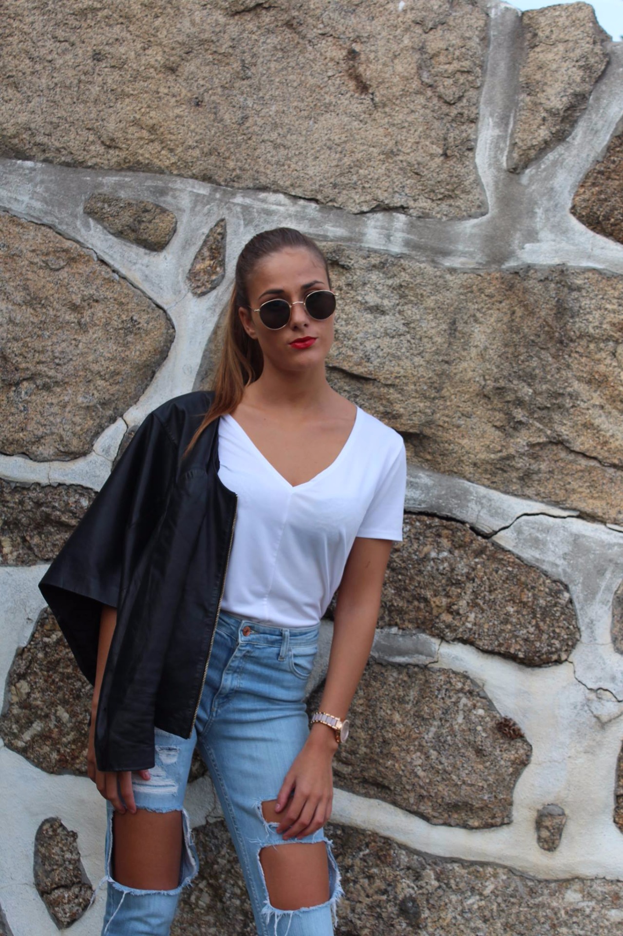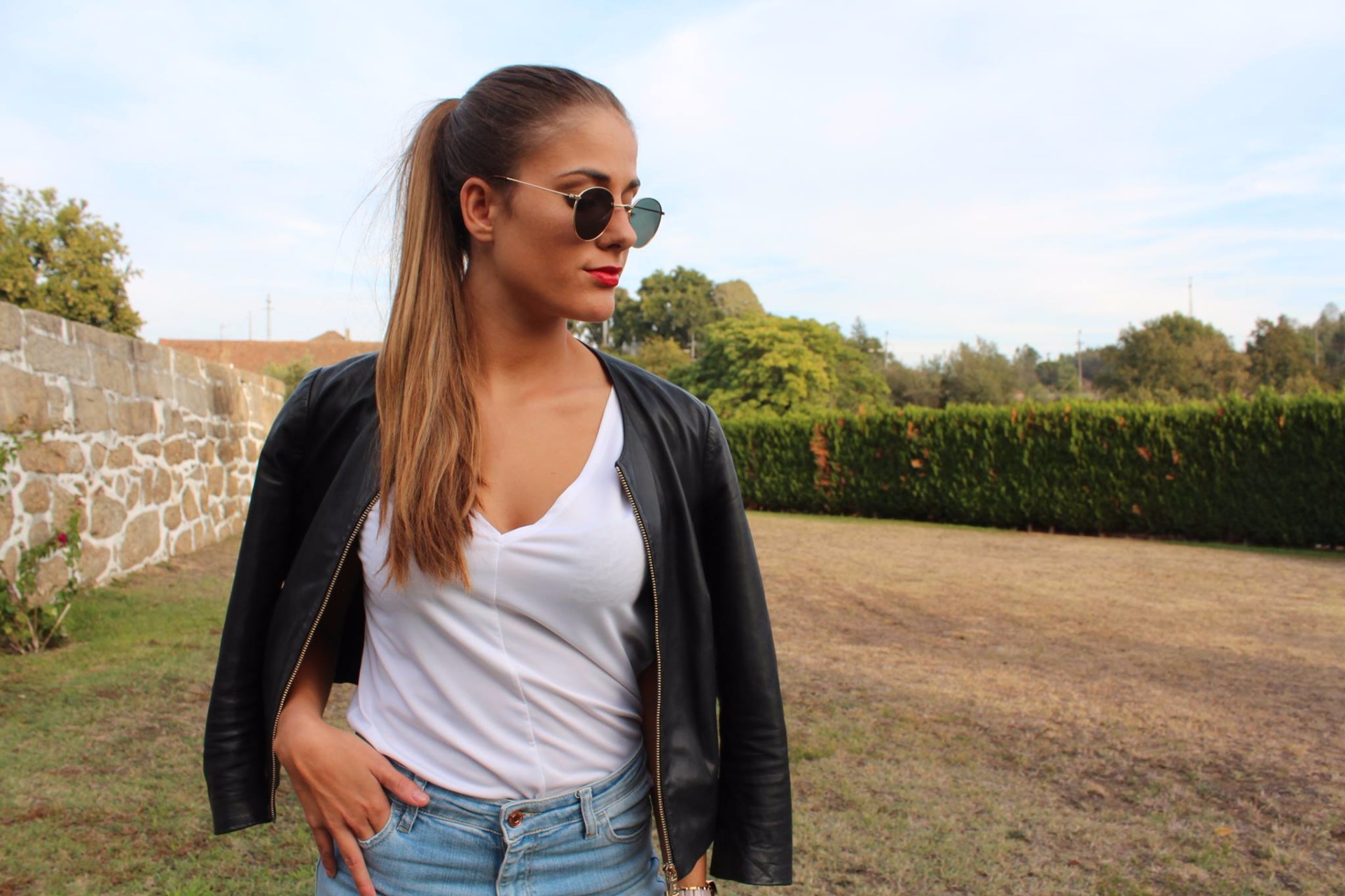 Pode ser o outfit mais simples de sempre...por exemplo, umas calças de ganga, uma t-shirt braca e um blusão de cabedal preto,mas tens de dar aquele toque final....Um batom vermelho!